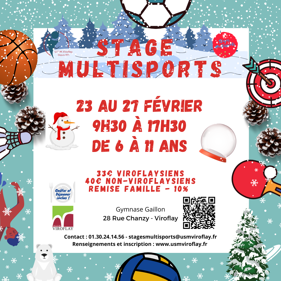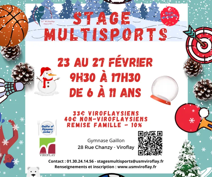 Publié le 05 Jan. 2026L’Union Sportive Multiactivité de Viroflay organise un stage multisport durant les vacances d'hiver, au Gymnase Gaillon, du lundi 23 au vendredi 27 février.